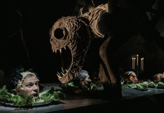 В спектакле артисты в живом плане существуют наравне с планшетными куклами, однако больше всего постановщиков интересуют смыслы, рождающиеся при взаимодействии людей и объектов. Один из центральных образов постановки — фигура Чумы, демонической сущности, которая уничтожает героев не только физически, но и морально. Она нашёптывает Скупому рыцарю мысли о патологическом накопительстве, сподвигает Сальери отравить Моцарта, а Дона Гуана заставляет глумиться над статуей Командора.